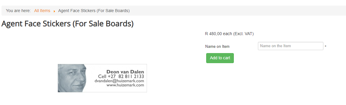 When you display the actual product it shows the correct price excluding VAT. R 480,00 each (Excl. VAT)