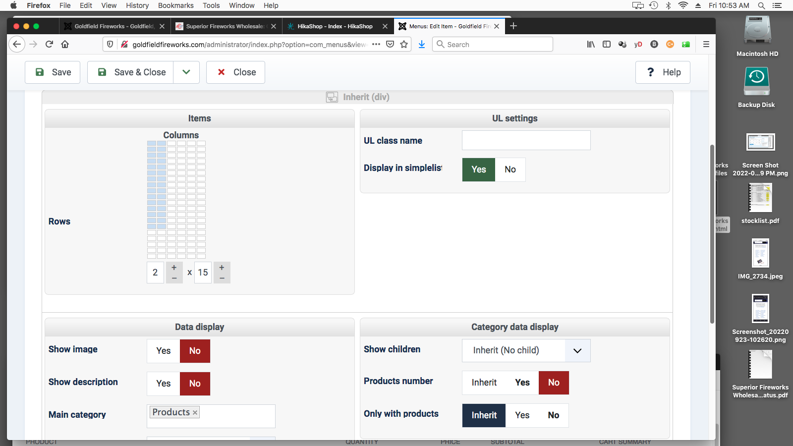 I have a menu item showing a Category listing, and I have set it to show 2 columns of categories. See the first screen shot for the menu settings.