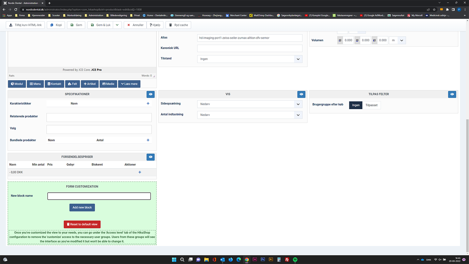 If I reset the red bottom in FORM CUSTOMIZATION it just go back after store the product. I have to reset to default view all the time.