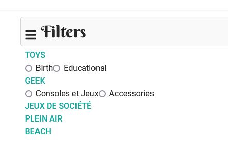 Note that this is the title of the custom field. On the filters area, the "Jeux de société" you see there is the name of the filter, not the title of the custom field. So if you want to change it there, you need to change the name of the filter with the translation key.