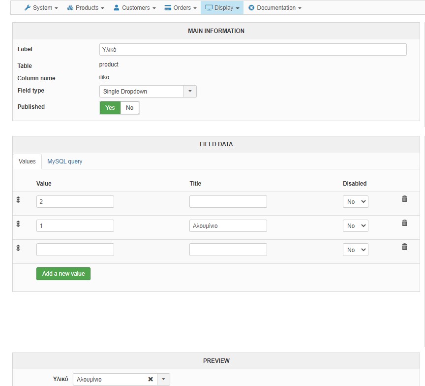 If I add on the single dorpdown filed an empty title with value 2 for examle it isn t shown on the products page backed.