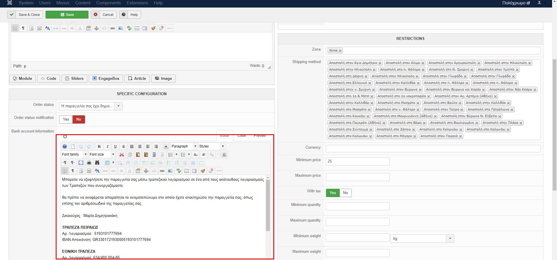 Translate SPECIFIC CONFIGURATION of payment methods