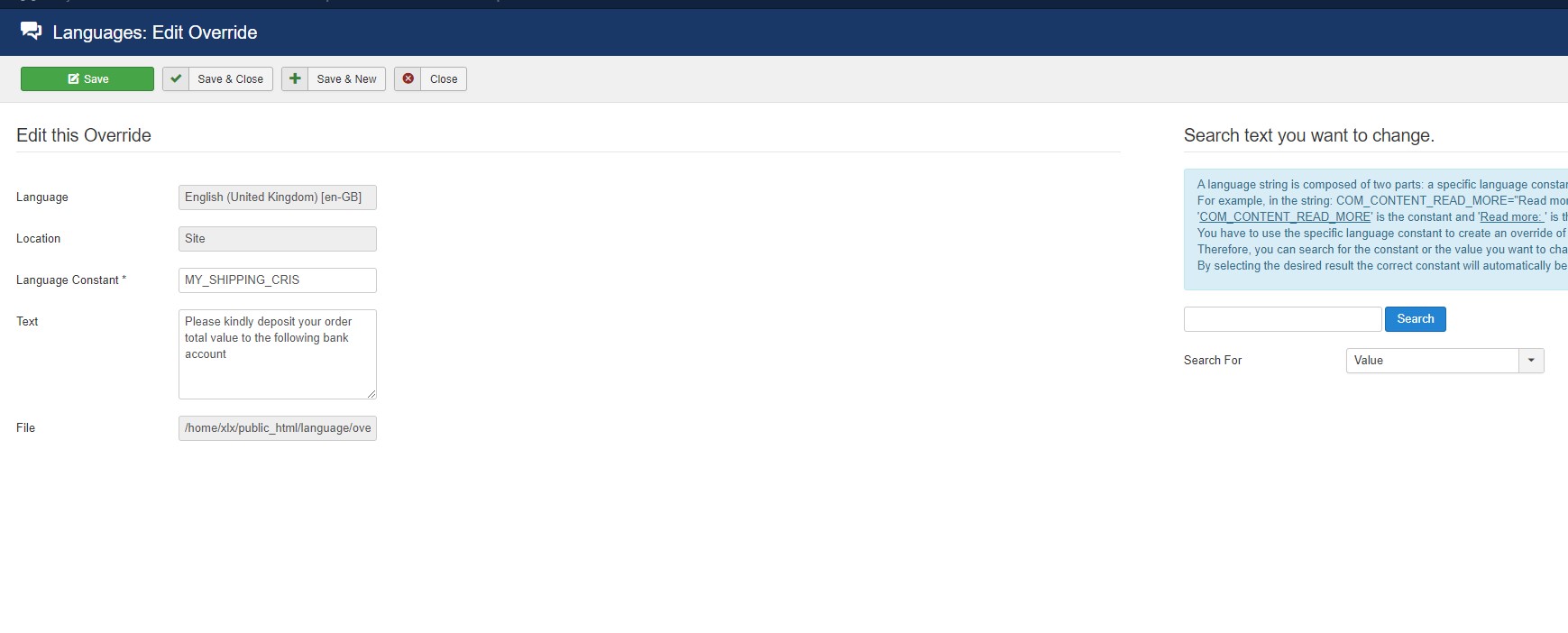 Hello again. I tried the solution with the translation key and overrides.