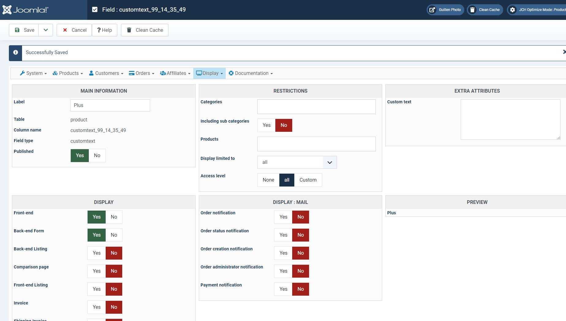 - le nom que je lui ai donné est plus (je vous expliquerai pourquoi après). J'essaye de lui donner un nom de colonne mais quand je sauvegarder j'ai le column name suivant qui est généré automatiquement : customtext_99_14_35_49.