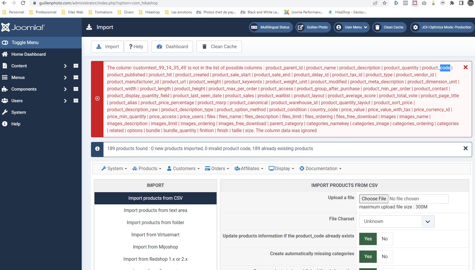 - toutes les produits que je crée sont importés via un fichier csv. Lorsque j'ajoute la fameuse colonne customtext_99_14_35_49, elle n'est pas reconnue par l'import.