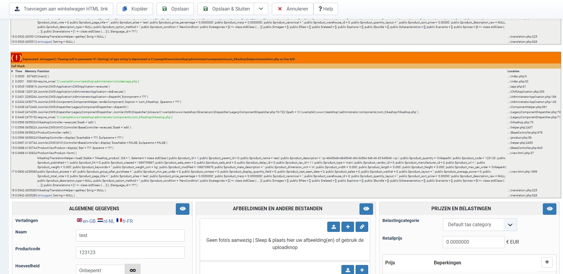 Deprecated: strtoupper(): Passing null to parameter #1 ($string) of type string is deprecated in C:\wamp64\www\testshop\administrator\components\com_hikashop\helpers\translation.php on line 628