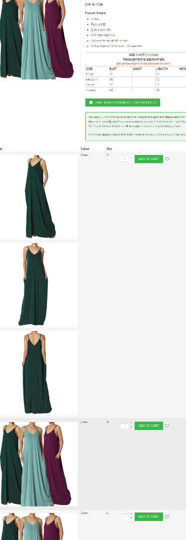 1. Change the "Characteristics selection method" setting to "List" in the HikaShop configuration and you'll see all the variants as a list on the product page.