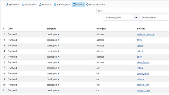 Note that in the menu Display>Views, you'll see all the views of HikaShop. And you'll see one row for one view file for each template installed on your website.