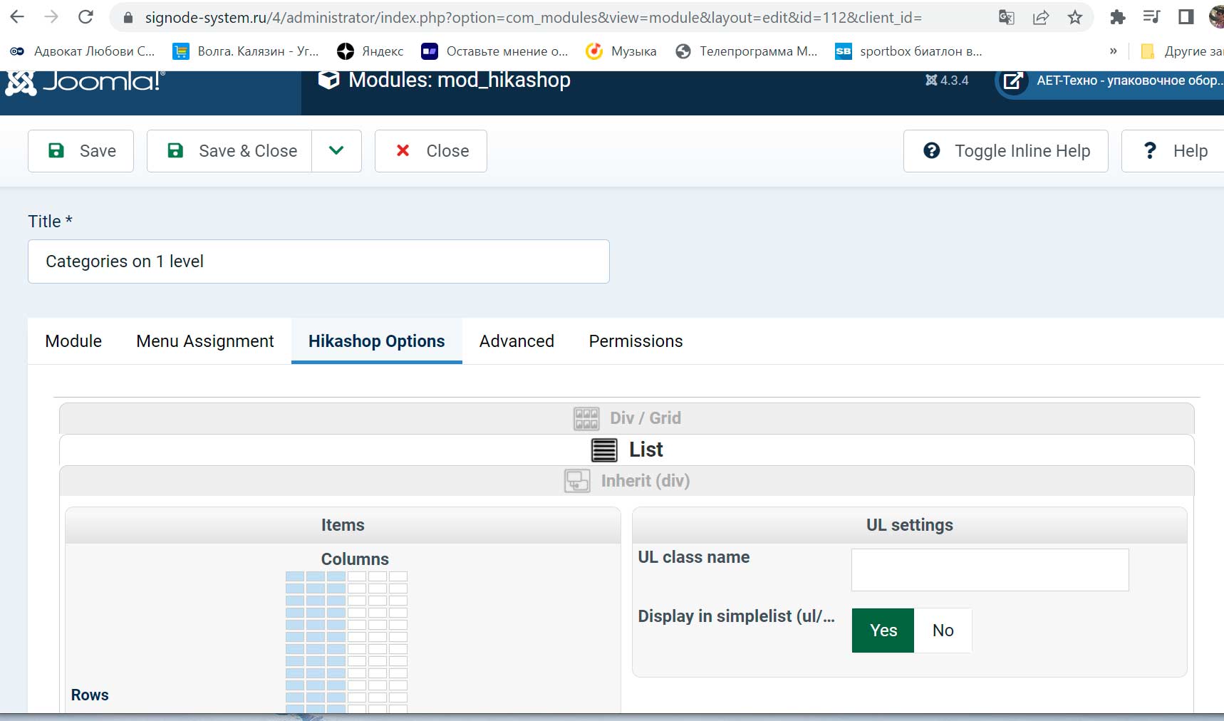 The site www.aet-group.ru/production.html is the old version of the site (it is still working), here joomla3, HikaShop and CinchMenu. It works here, that's why i decided to use it again to create a new version of the site. But as it turned out, CinchMenu is not suitable for modern versions of Joomla and HikaShop - the CinchMenu module has not been updated since 2013.