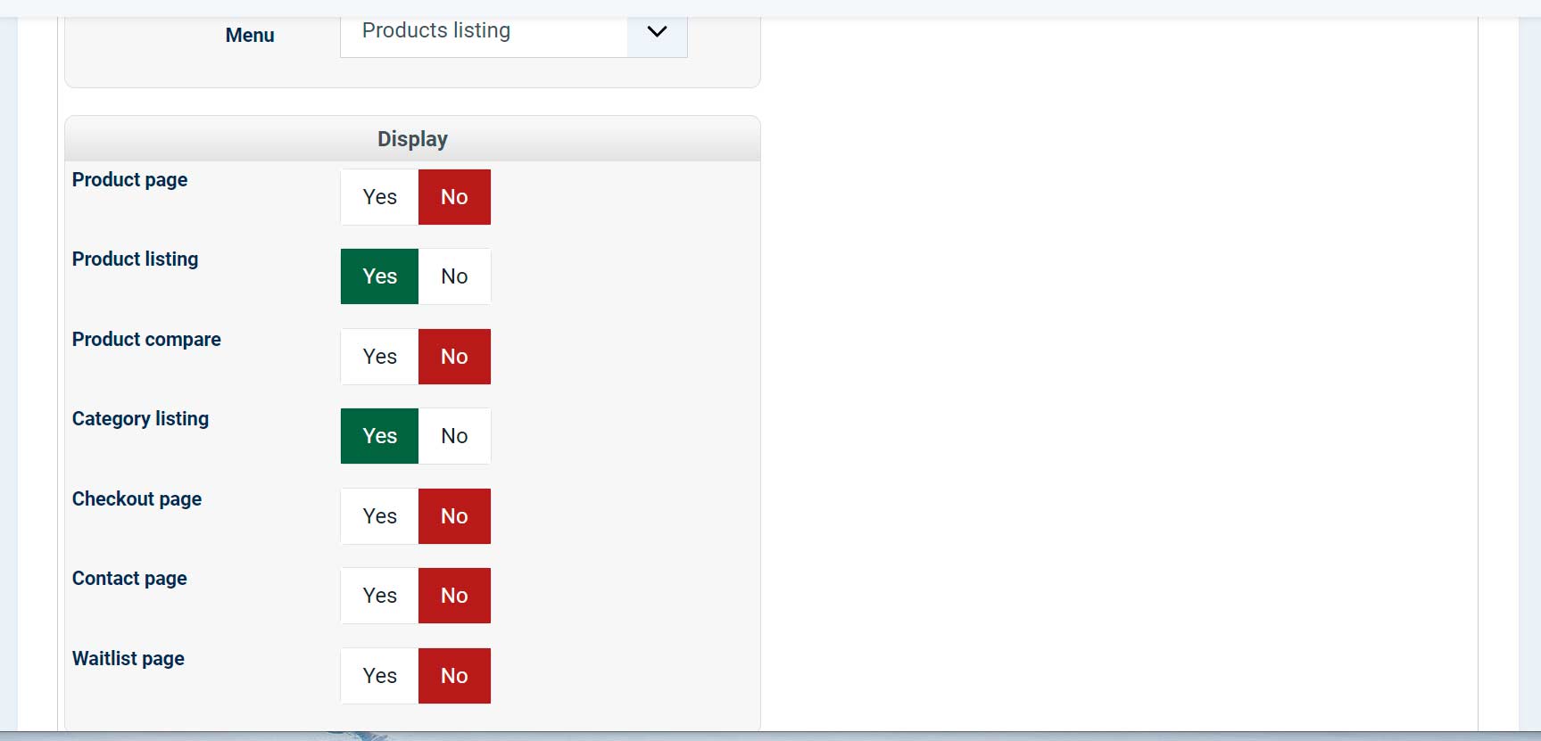 1. When I took screenshots, I saw the Display settings at the bottom. They were all disabled. I have enabled the Product listing and Category listing options. It became much better, but! Now, when opening pages from the module, descriptions are everywhere, but there are no subcategories. At the same time, when opening from the main horizontal menu, there are subdirectories.