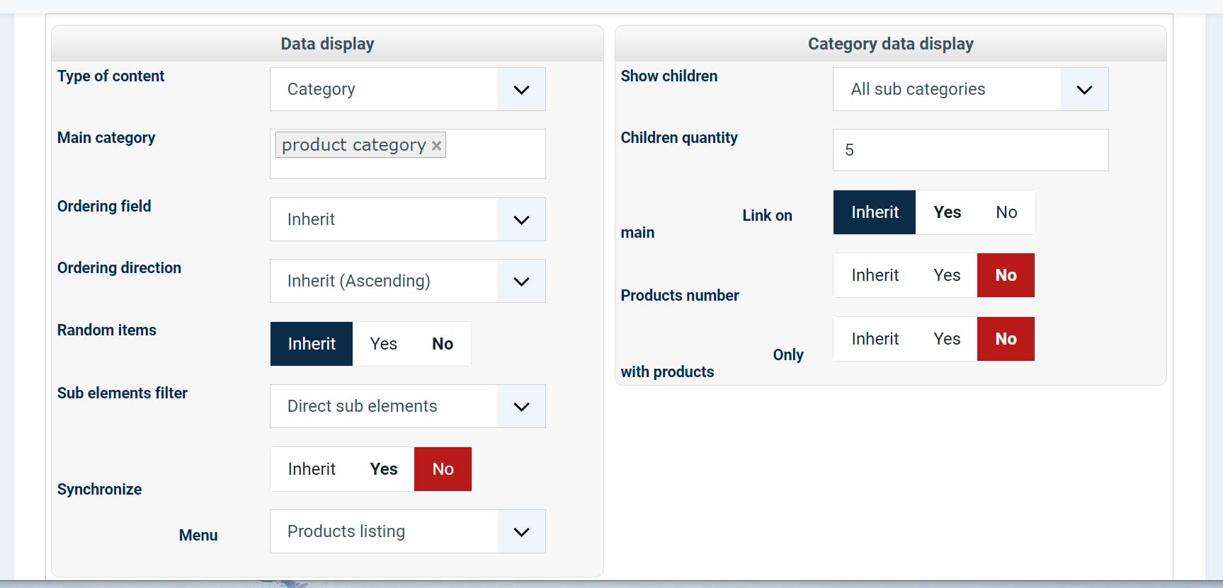 1. Do you mean it - see screenshots 1 and 2? As you can see, synchronization is disabled, but nothing has changed - only titles are displayed on the subcategory pages. Or something else you had in mind?