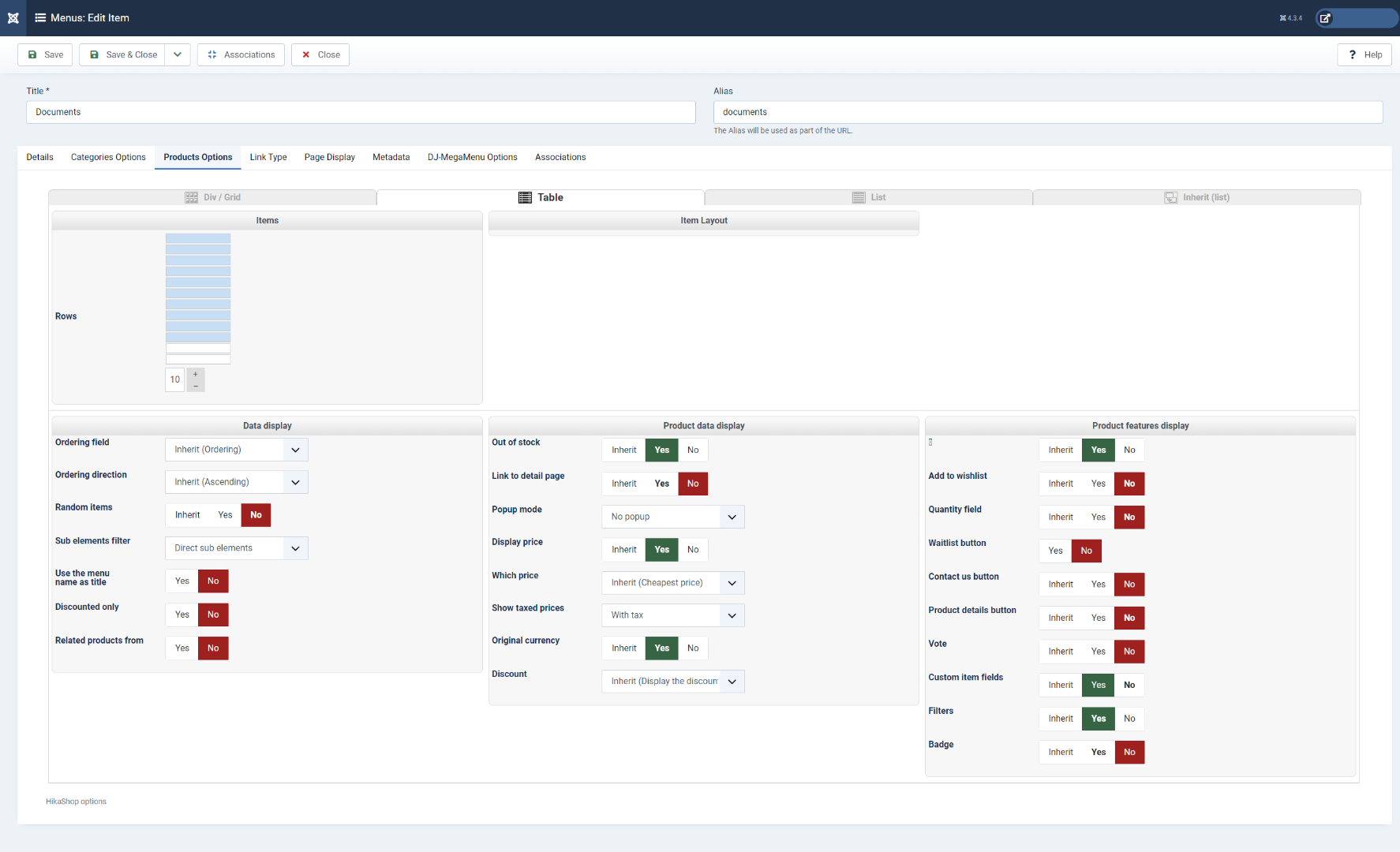 There is a problem with the javascript not updating the number of elements of the listing when changing between the different layouts (div, table, etc). You need to manually click on the number of rows you want and then save to have it saved in the database, so that it can be taken into account on the frontend.