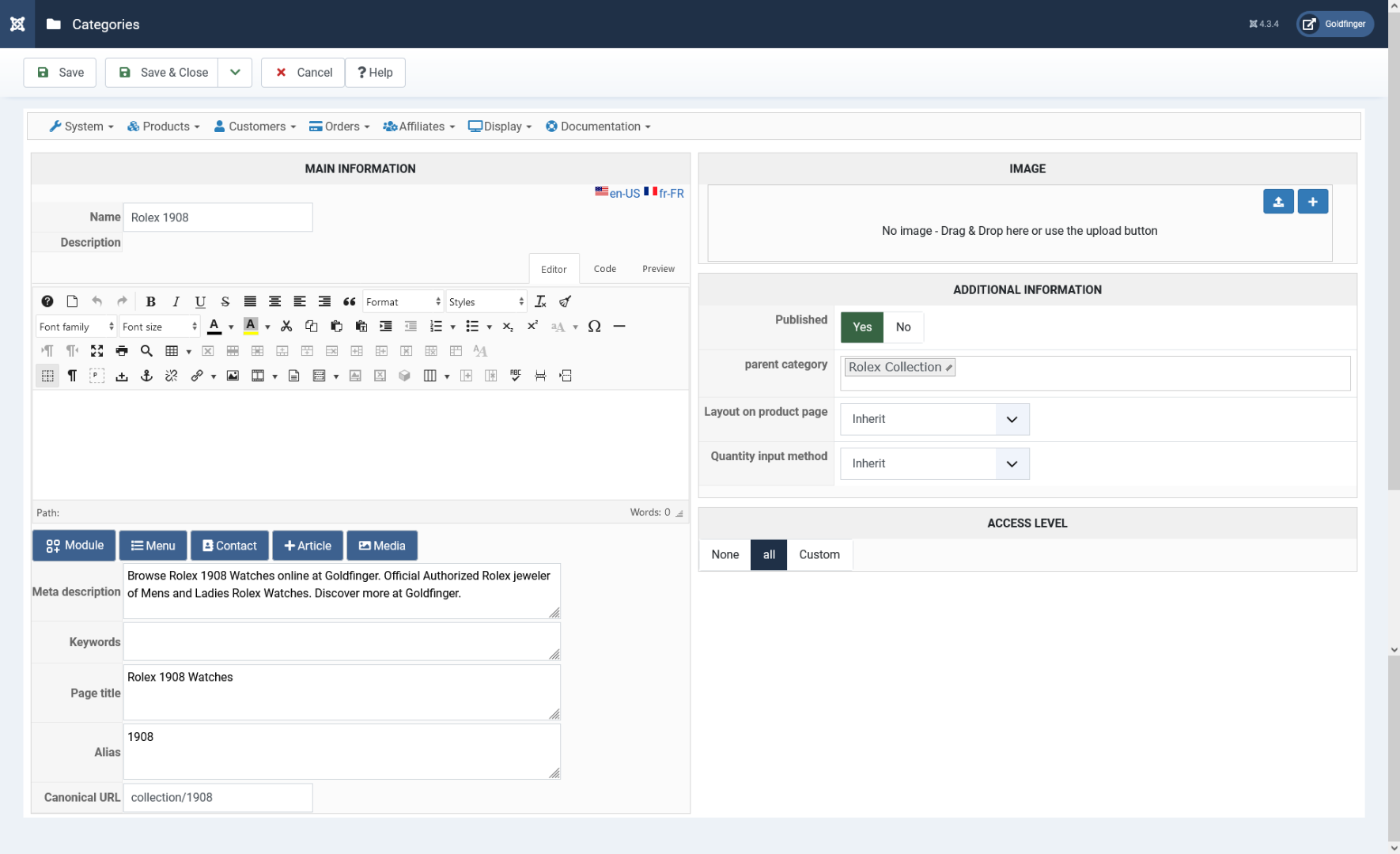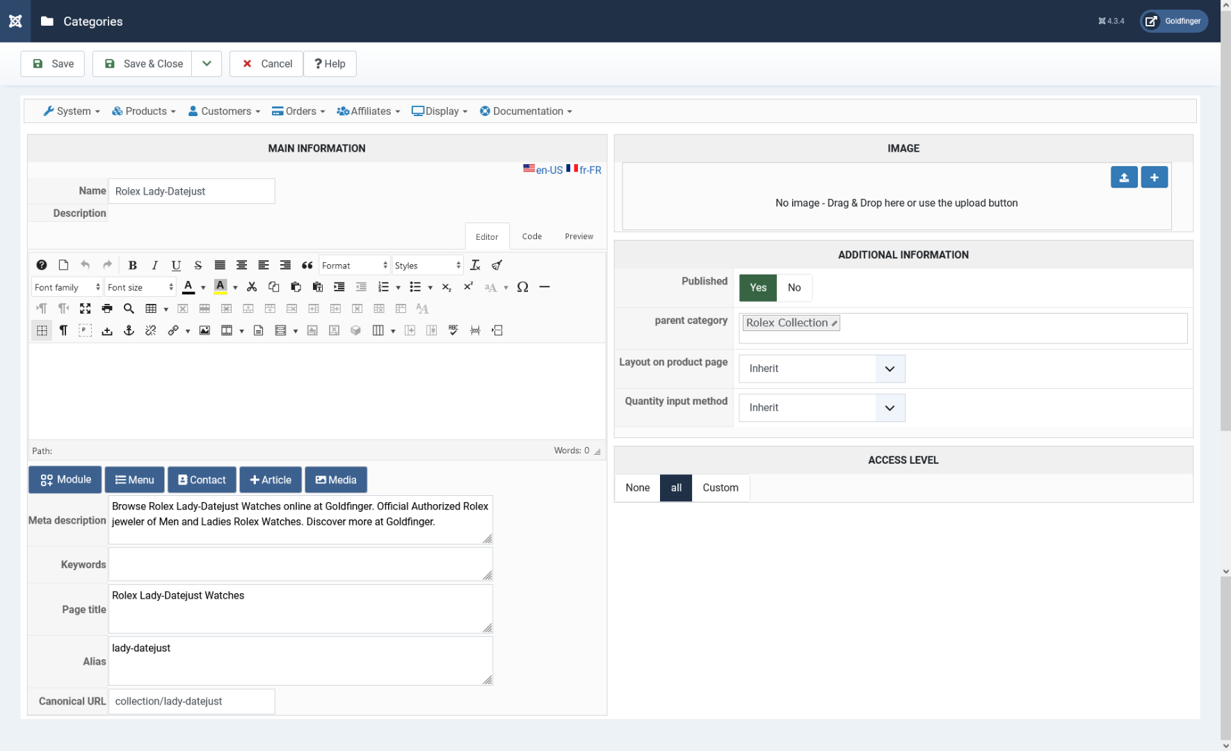 The "hreflang" tag added for the en-US language on this page has the same href as the canonical tag added by HikaShop.