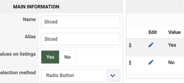 Also, with the "Display values on listings" setting activated in the settings of the characteristic, you should see the yes / no values on the listing where that product is listed on the frontend. However, I don't see any product with that on your website products listings.