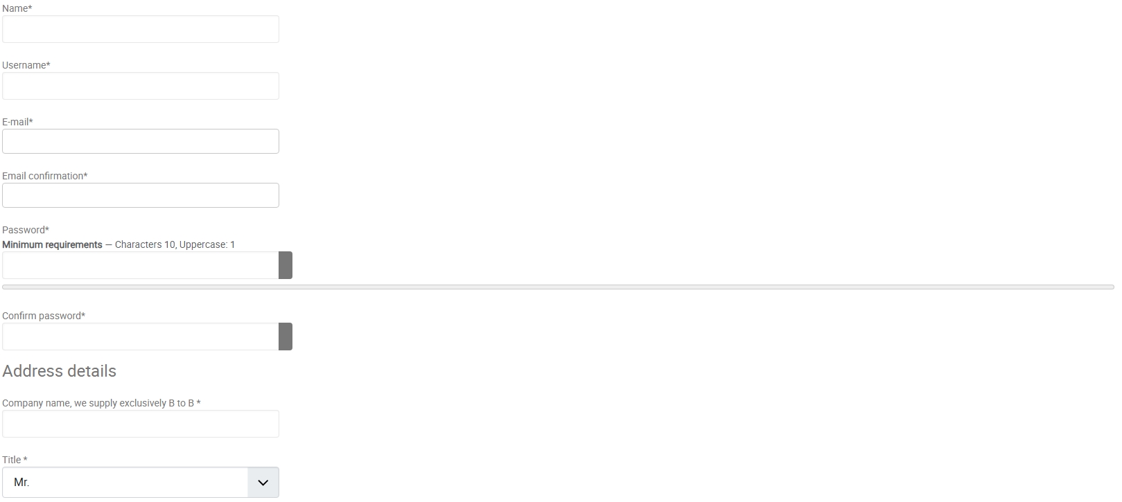This constrains the registration form to 450px, which makes the labels (at 4/12 of that width = ~150px) too narrow for some Dutch labels like "E-mail bevestiging" or "Wachtwoord bevestigen" which then wrap to two lines.