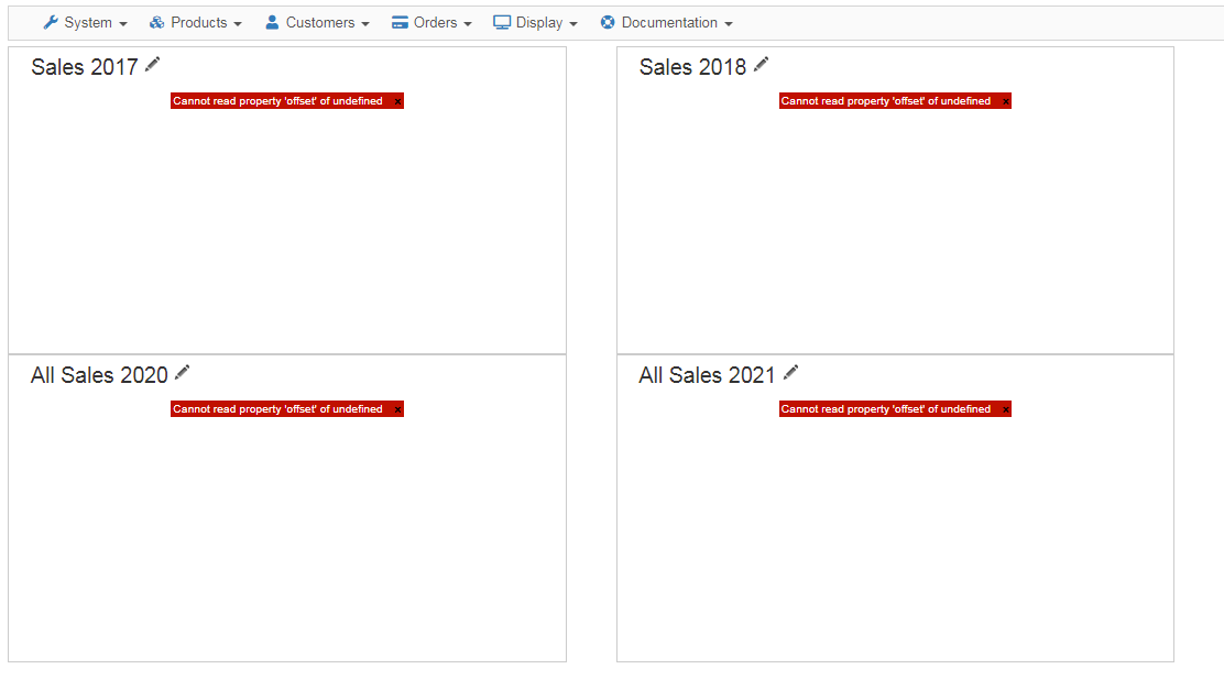 All reports showing error message: Cannot read property 'offset' of undefined