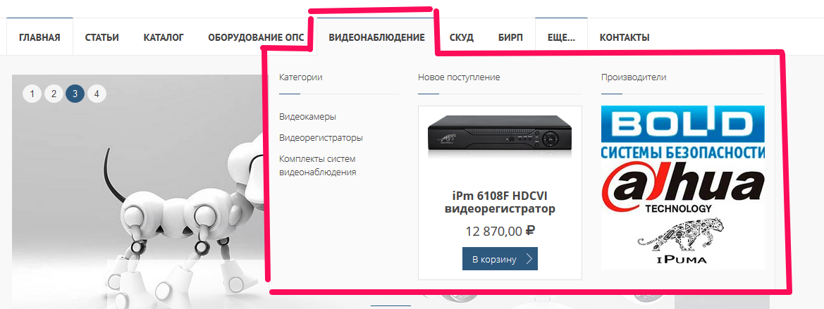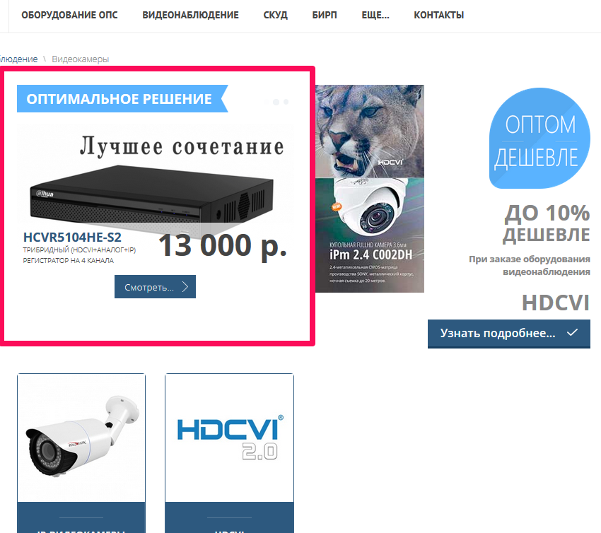 а так же рекламный блок в котором 3 товара объединяют оптимальное решение на базе товаров магазина: