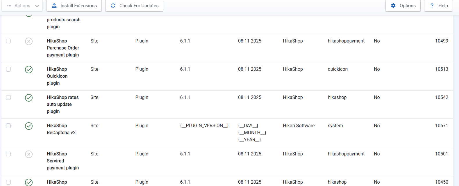 Cela signifiait que l'installation de mon extension Hikashop avait un plugin qui faisait planté Joomla mais qu'il n'était plus dans la version 6.1.1.