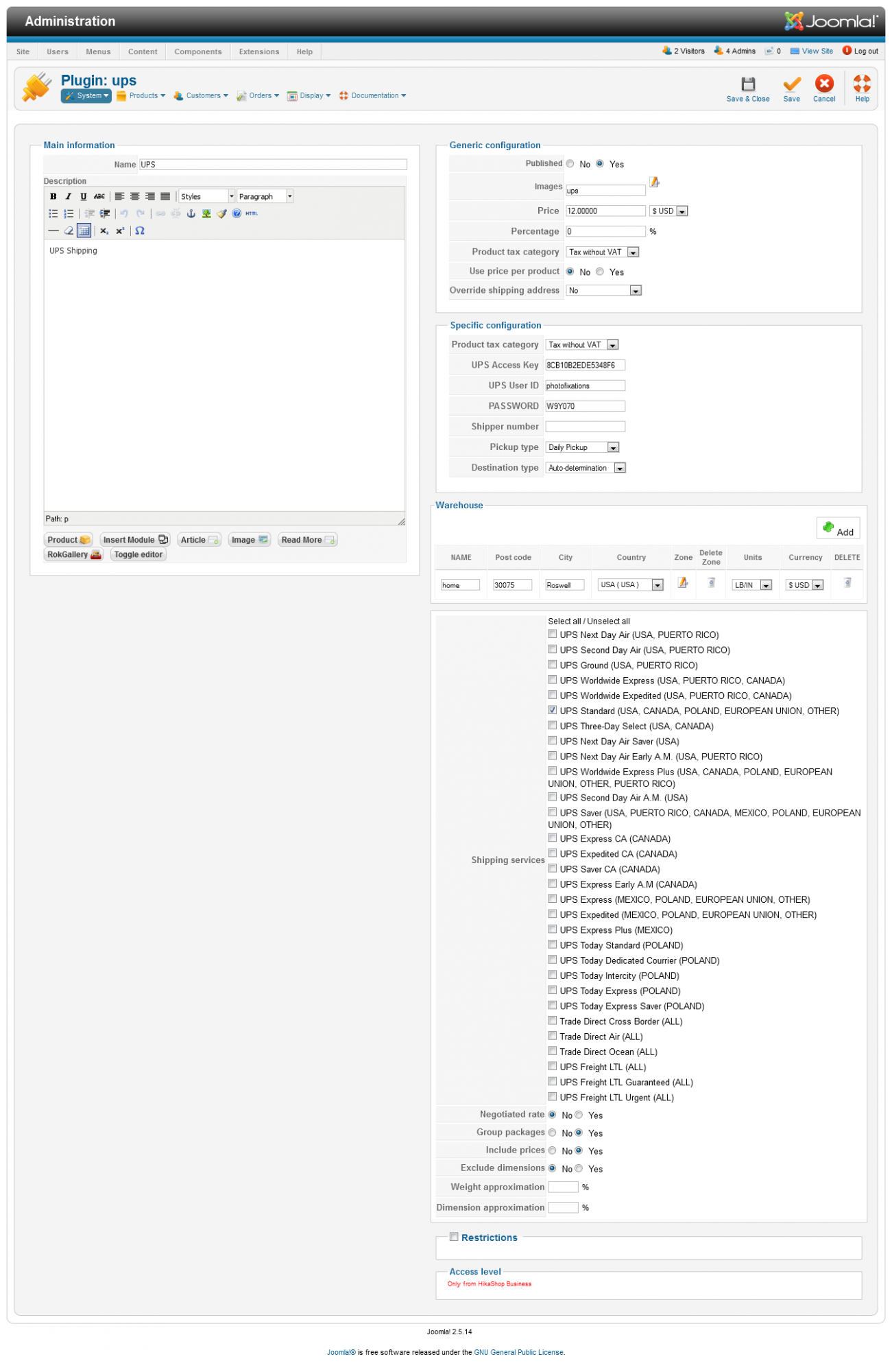 - Your product weight and dimension that you are using when you're testing the UPS shipping method.
