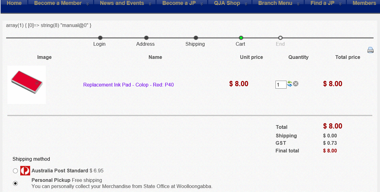 -- url of the page with the problem -- : qja.com.au/qjashop