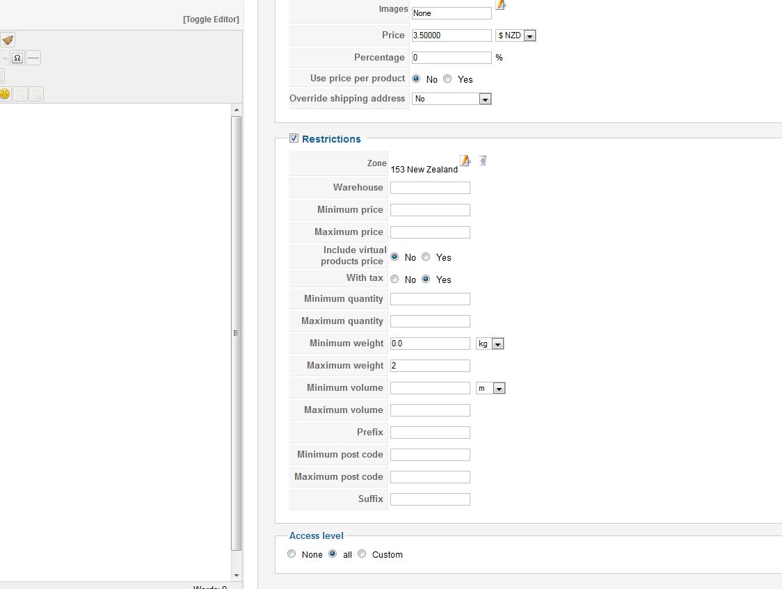 I think that the problem is coming from the fact that you product don't have any volume, can you try it with a volume in you 0.25kg product ? Also are you sure that your shipping address was a New Zealand address ?