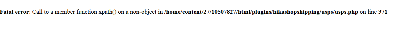[09-Nov-2013 05:48:27 America/Denver] PHP Fatal error: Call to a member function xpath() on a non-object in /home3/gravest3/public_html/plugins/hikashopshipping/usps/usps.php on line 371