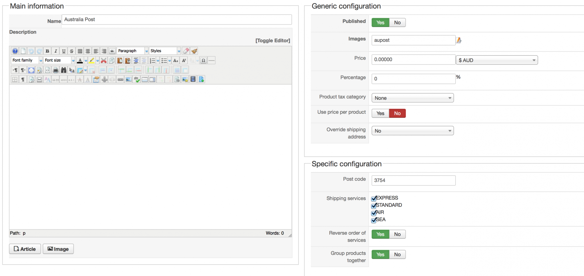I am trying to set up a simple one off charge for shipping using Australia Post.