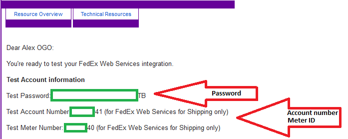 For the password field I used "Test password" from the email that FedEx send to me after confirmation(Image #3).