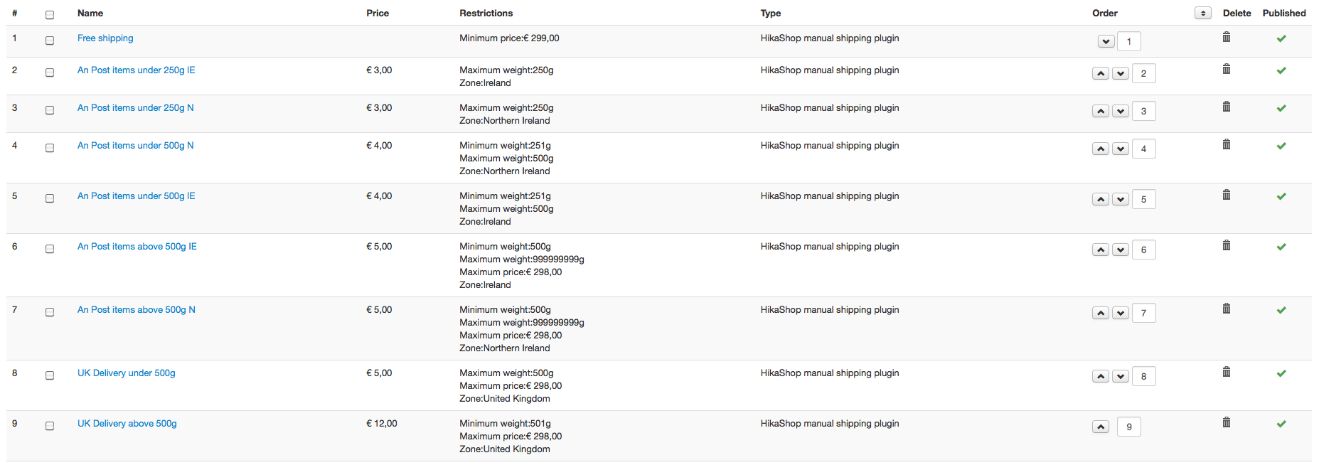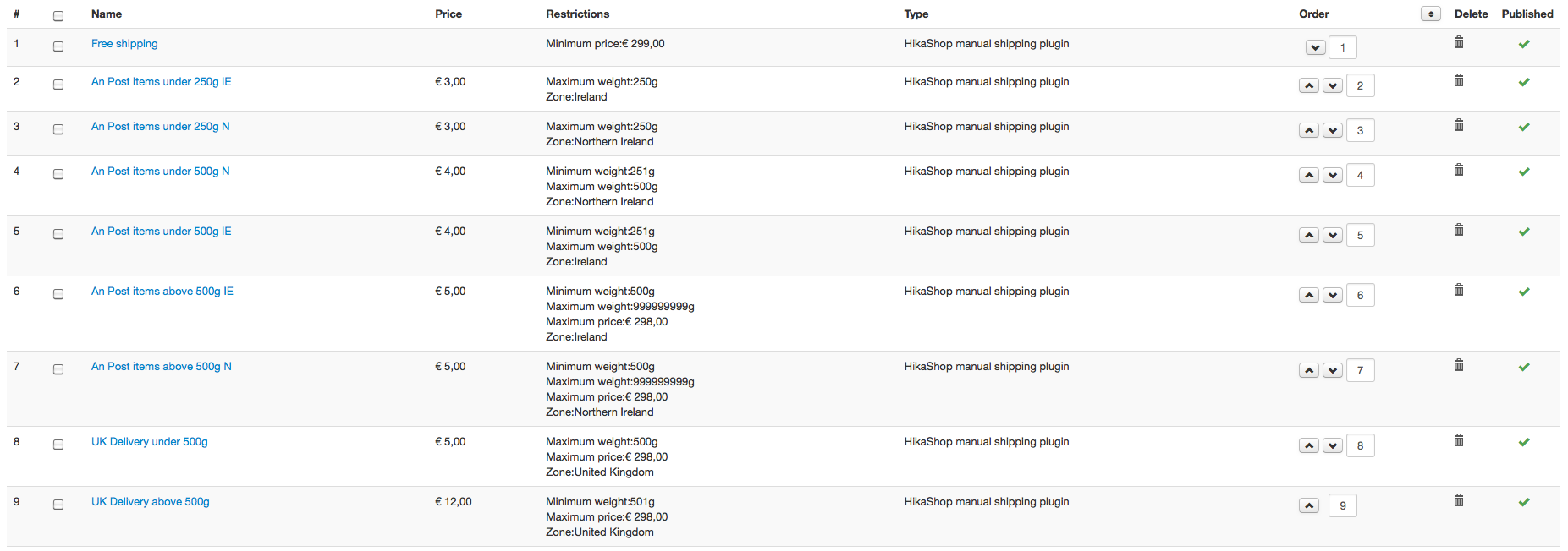 - UK above 500g - €12 but less then €299