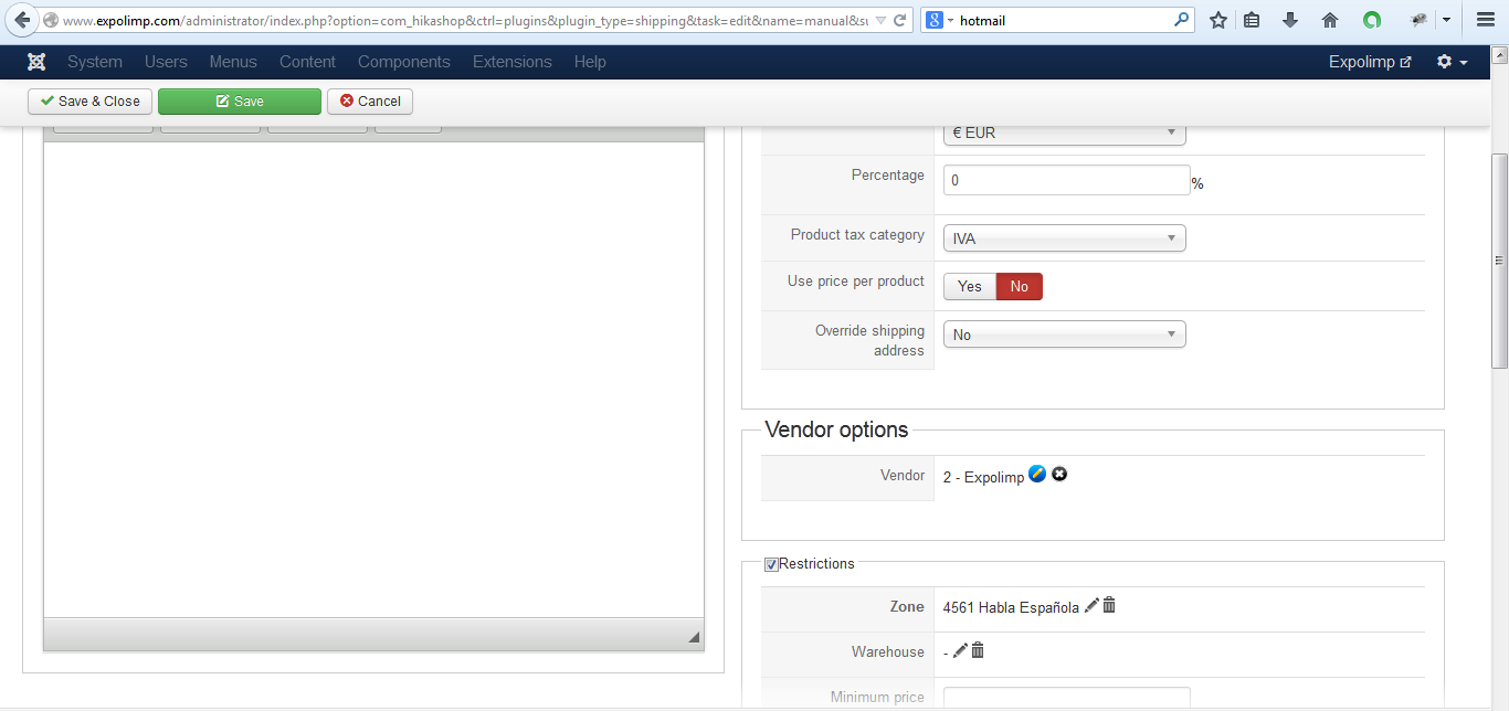 Estamos intentando montar una tienda multivendedores con multipaises de habla hispanica. La idea es que los metodos de envio de cada vendedor esten condicionados por una zona (zone) y un almacen (warehouse).