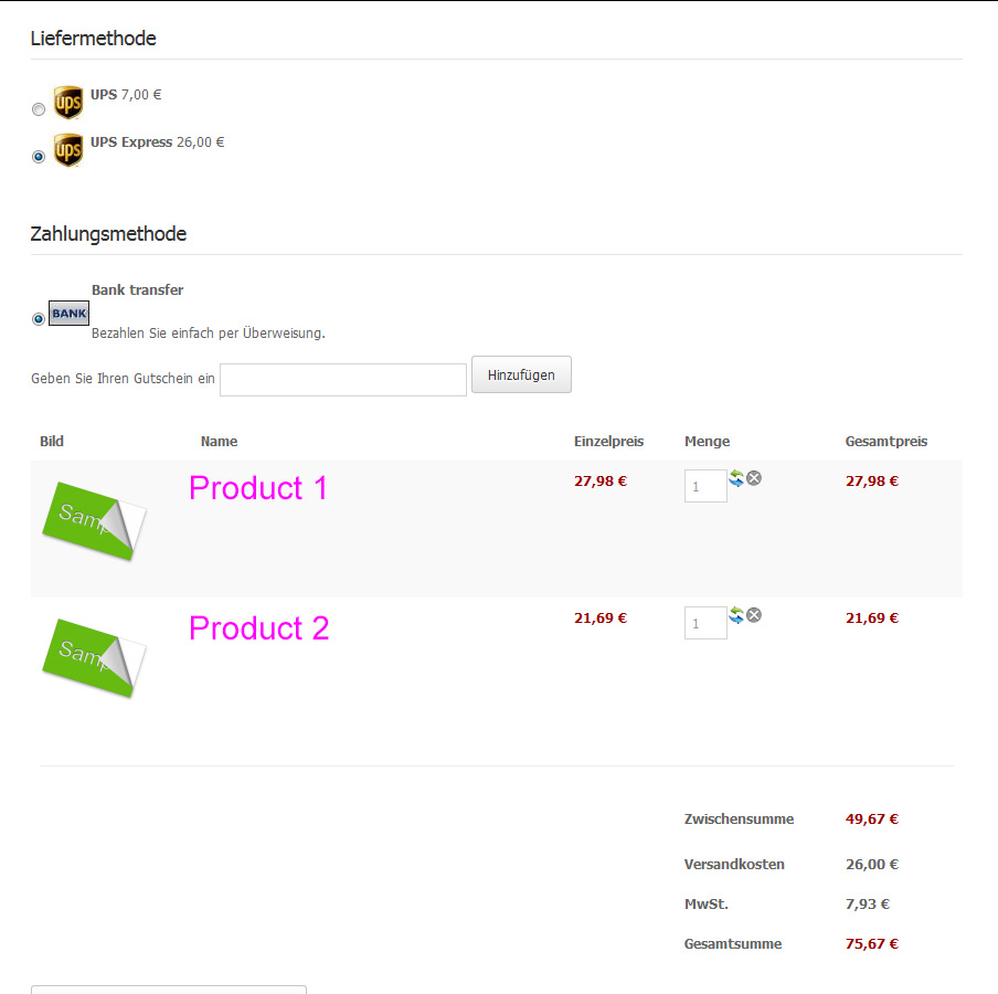 Product 1 20€ 3,50€ Shipping