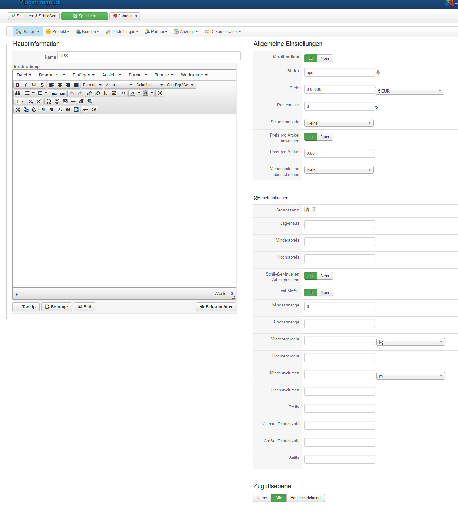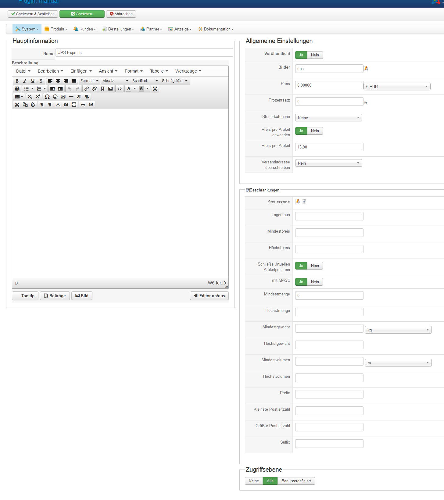 - Set a price (14,90€) for the "Express shipping"