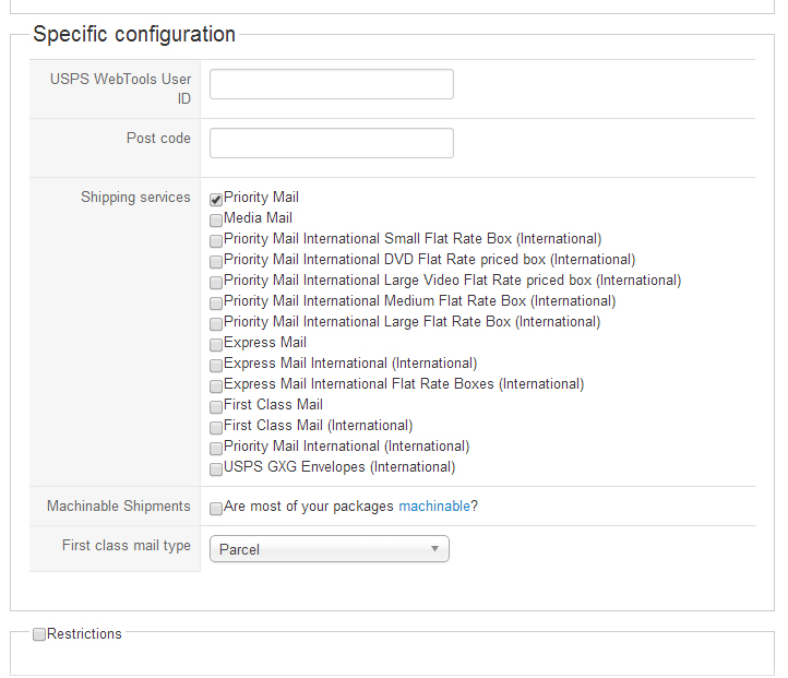 I am going to System > Shipping Methods > United States Postal Service (Hikashop USPS Shipping Plugin)