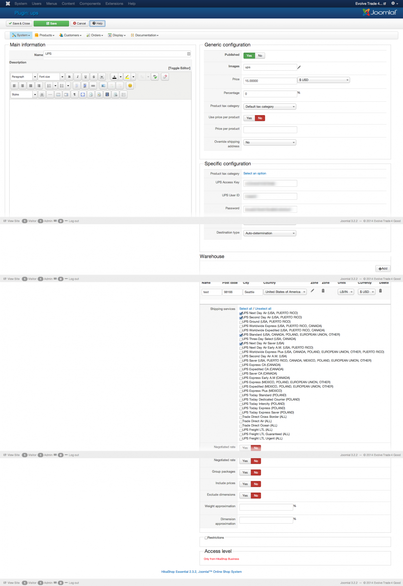 I'm including my settings for the UPS plugin
