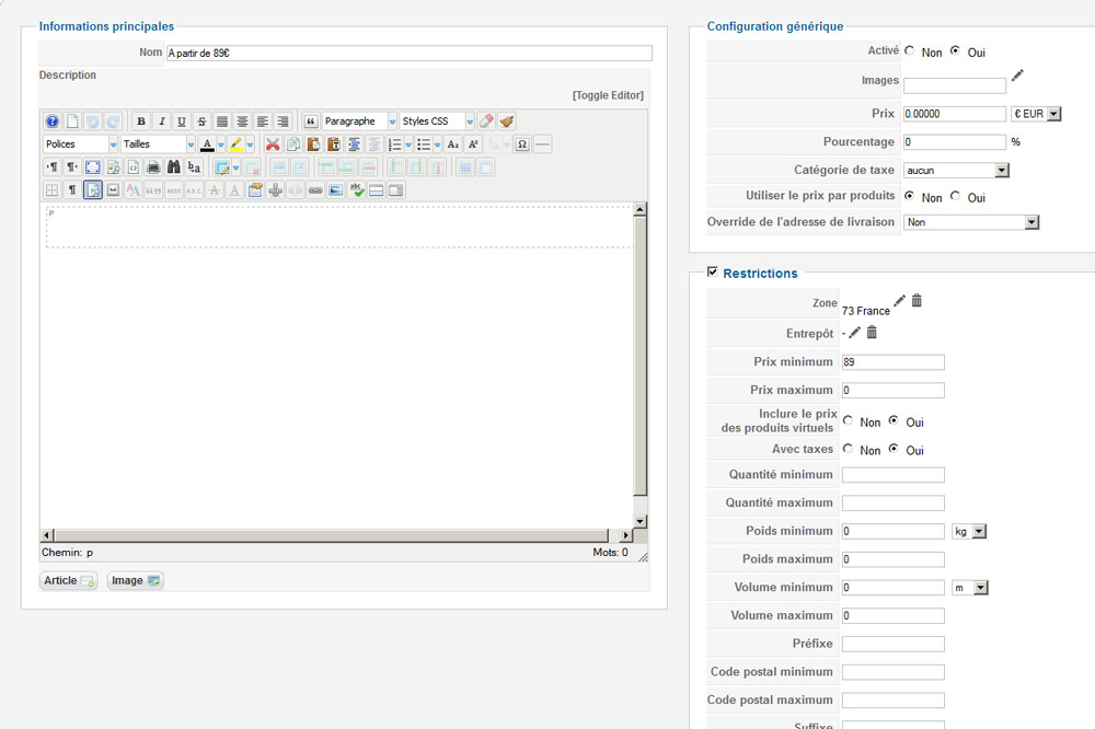 Ainsi, sans restriction de prix, tout marche mais dès que vous avez des restrictions sur le prix et que l'option "Include virtual product prices" n'est pas activée, plus rien ne s'affiche car seul le prix des produits avec un poids sont prit en compte.