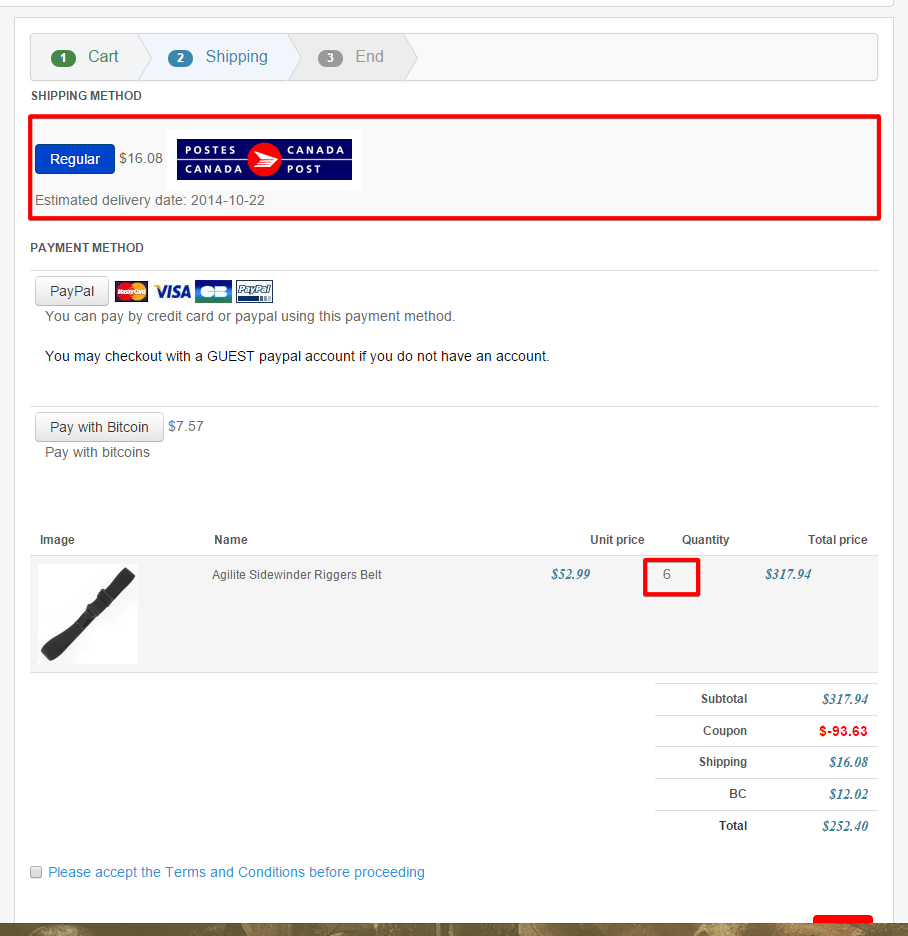When I checkout, it first gave me an error saying "Error while sending XML to CANADA POST 3000 (something)" postal code invalid or something...