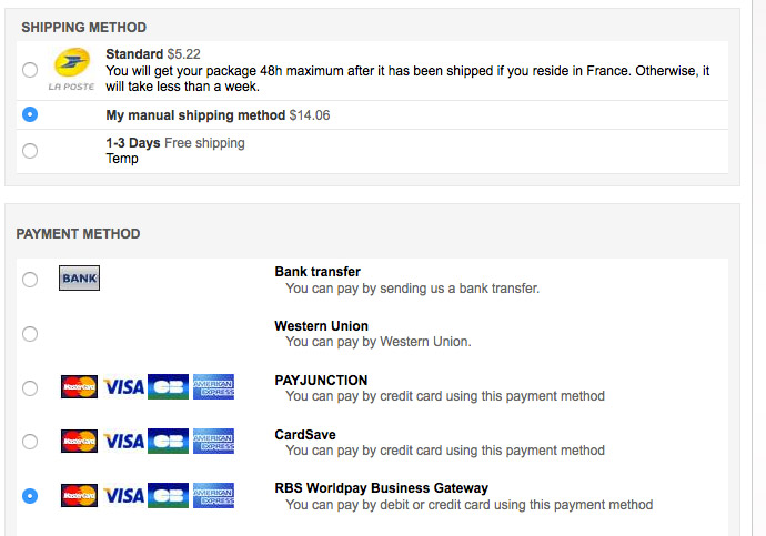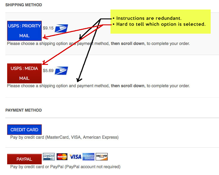 The checkout in the bootstrap design do not use simple radio ; it uses "radio buttons" where the content of the button is the method name.