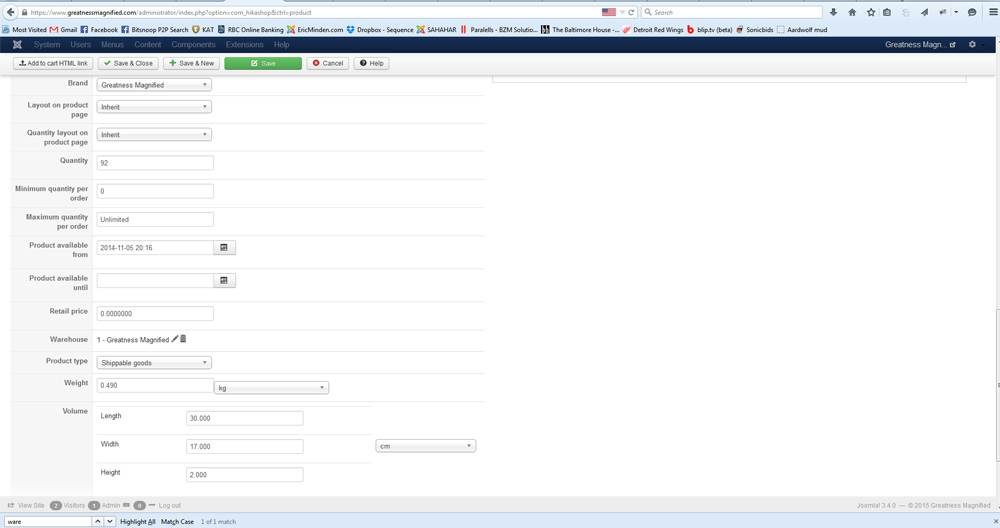 -- Joomla version -- : 3.4.0