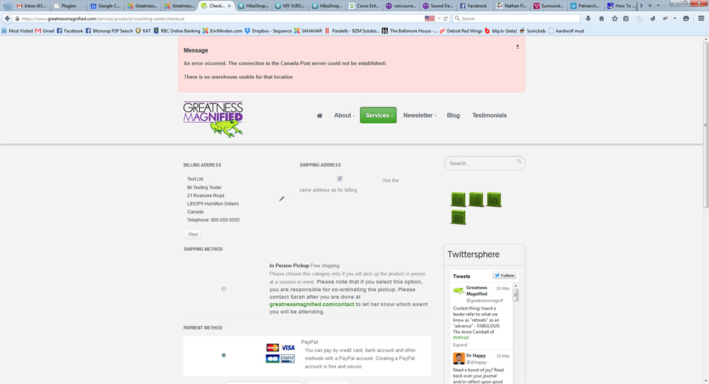 "An error occurred. The connection to the Canada Post server could not be established: