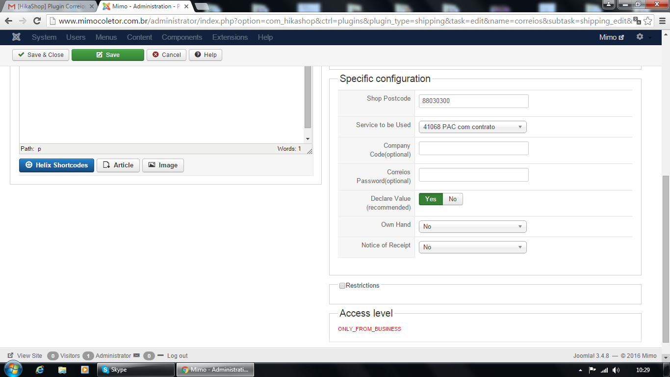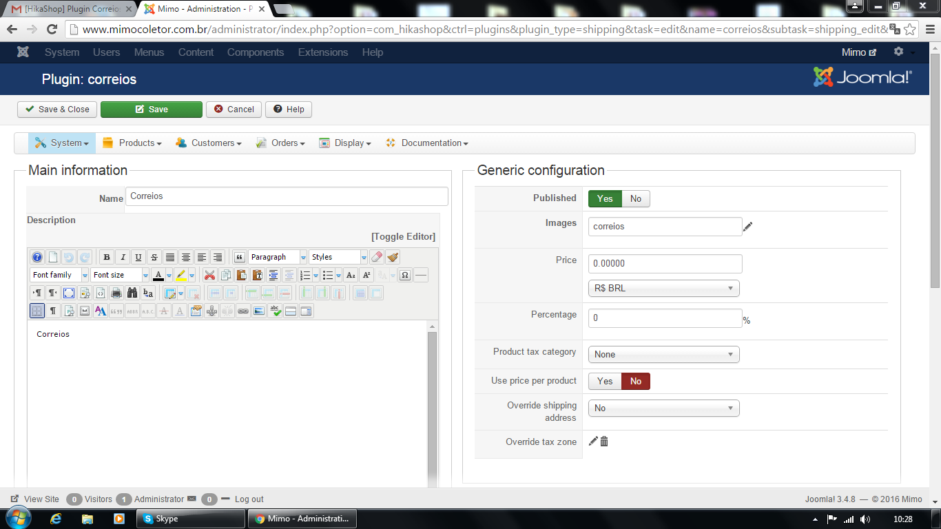 Hello , I installed the hikashop and the plug-in shipping correios , but does not appear active at check -out.
