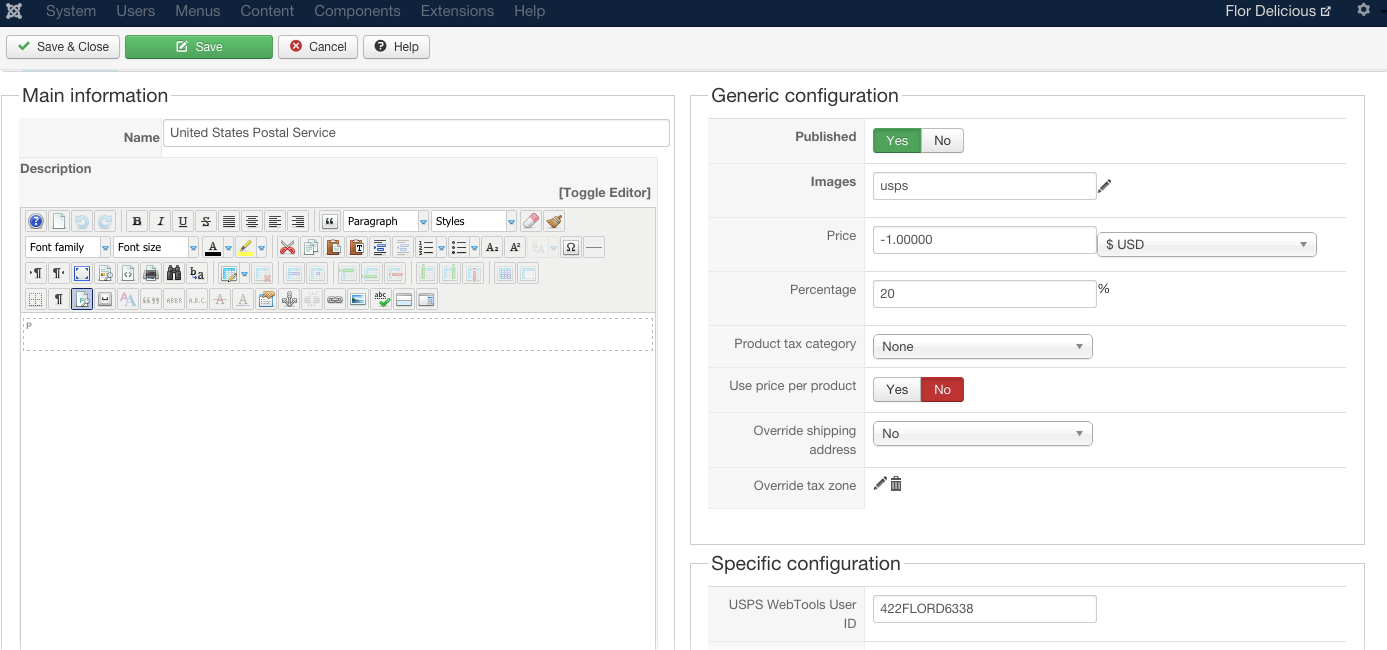 - Some of your USPS settings