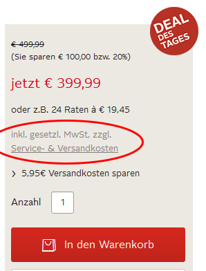 under German law, the sale price indicated must be displayed with a link to the shipping and incl . VAT.