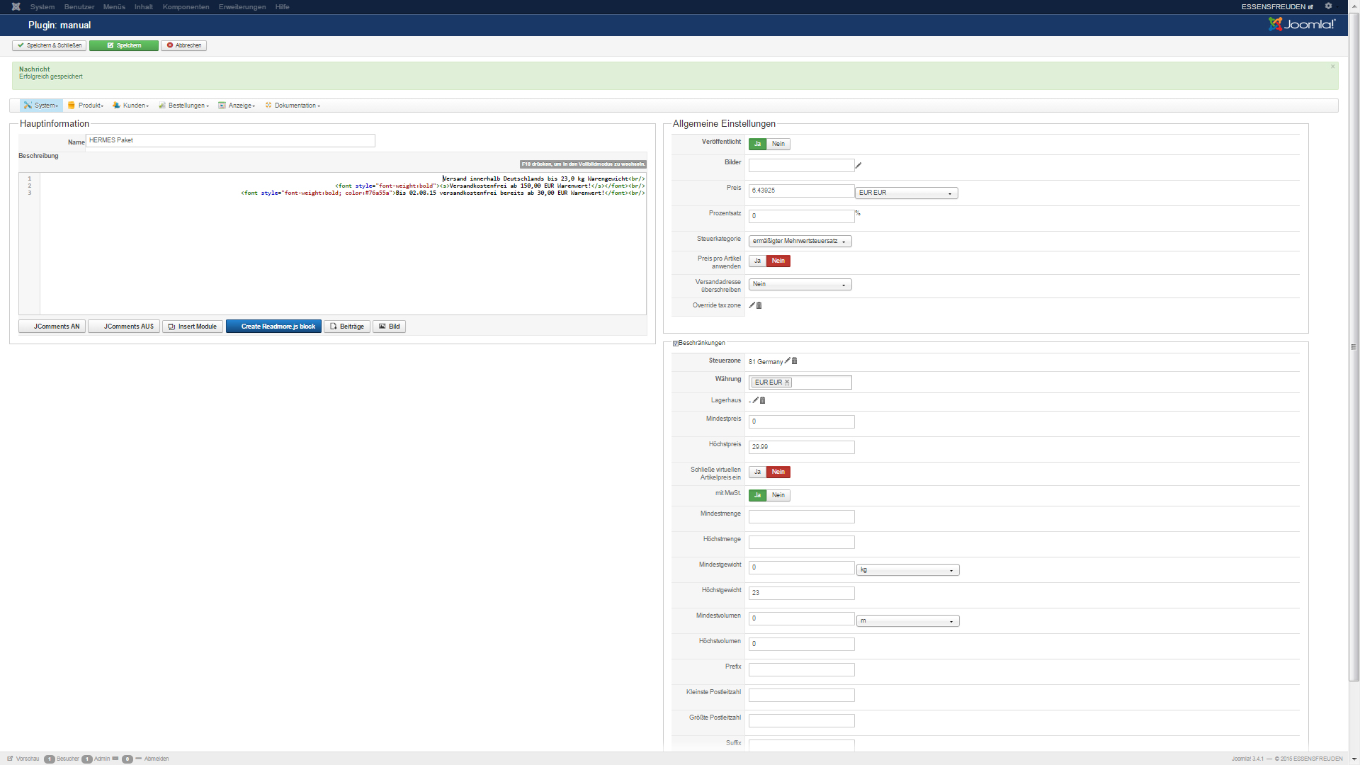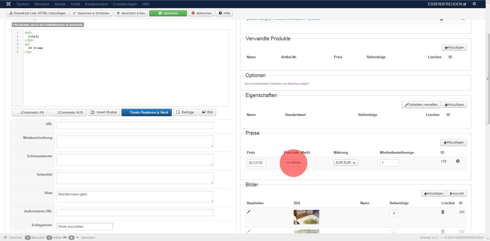Now the only question I have left is: Can I stop HikaShop from changing the prices given? I want the product price to be 30.00 euros, not 29.999996 euros...