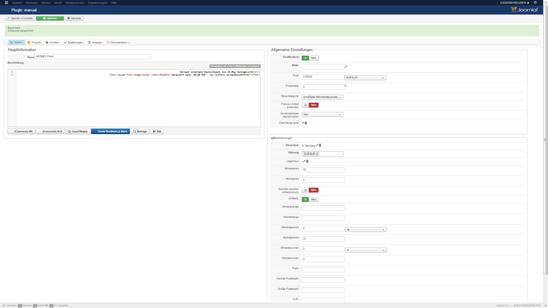 So if I want free shipping for orders from 30.00 euros, I have to set both the maximum price for shipping with costs and the minimum price for free shipping to 29.99 - doen't really make sense, but it works.
