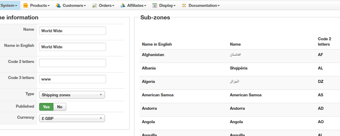 Shipping Zones Issue