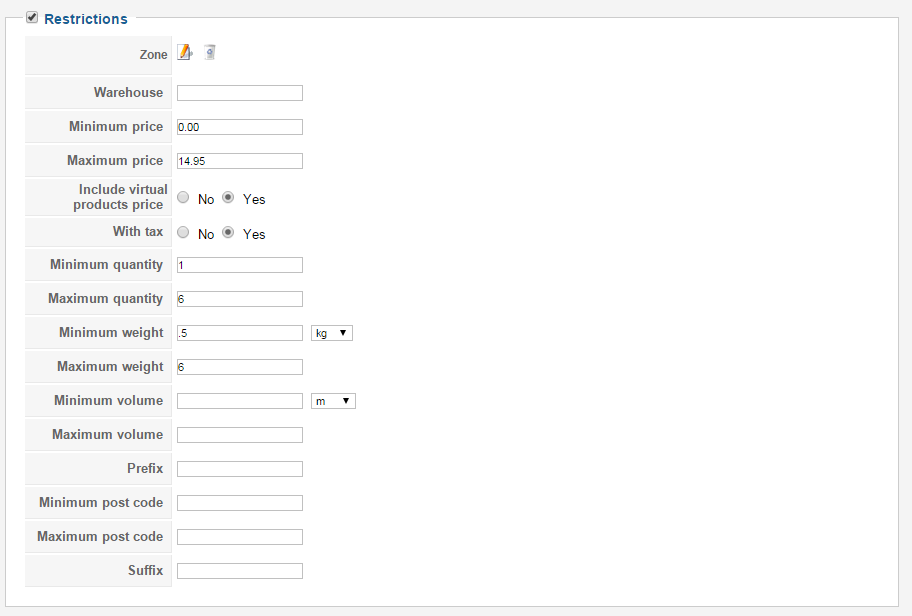 The cart items combined quantity is too small for all the possible shipping methods