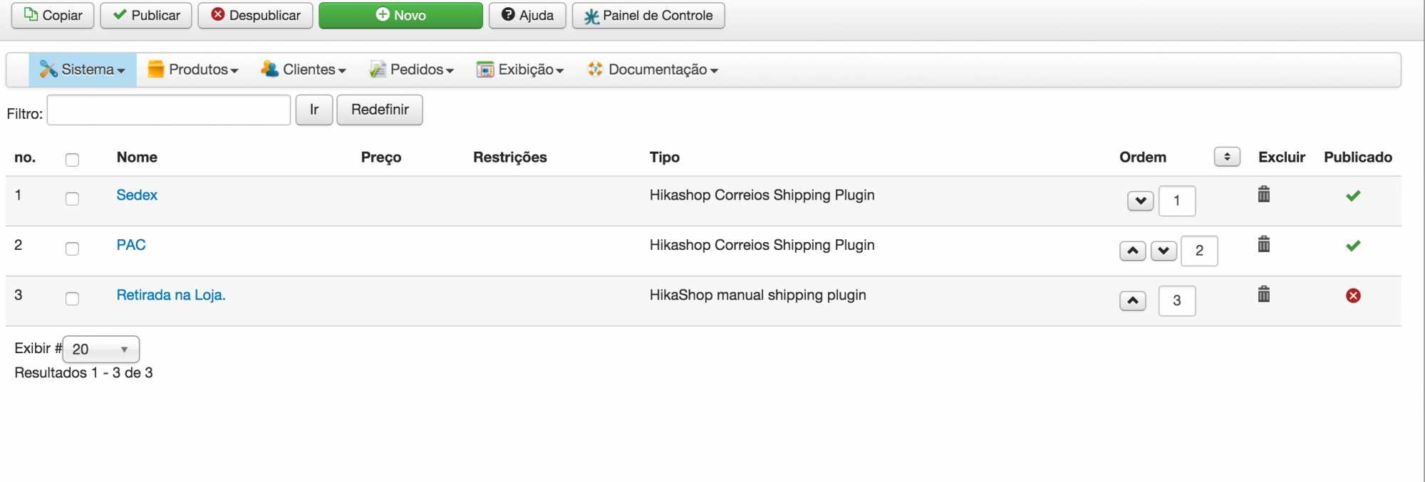 I install again correios plugin and new verstion from hikashop is some problem.
