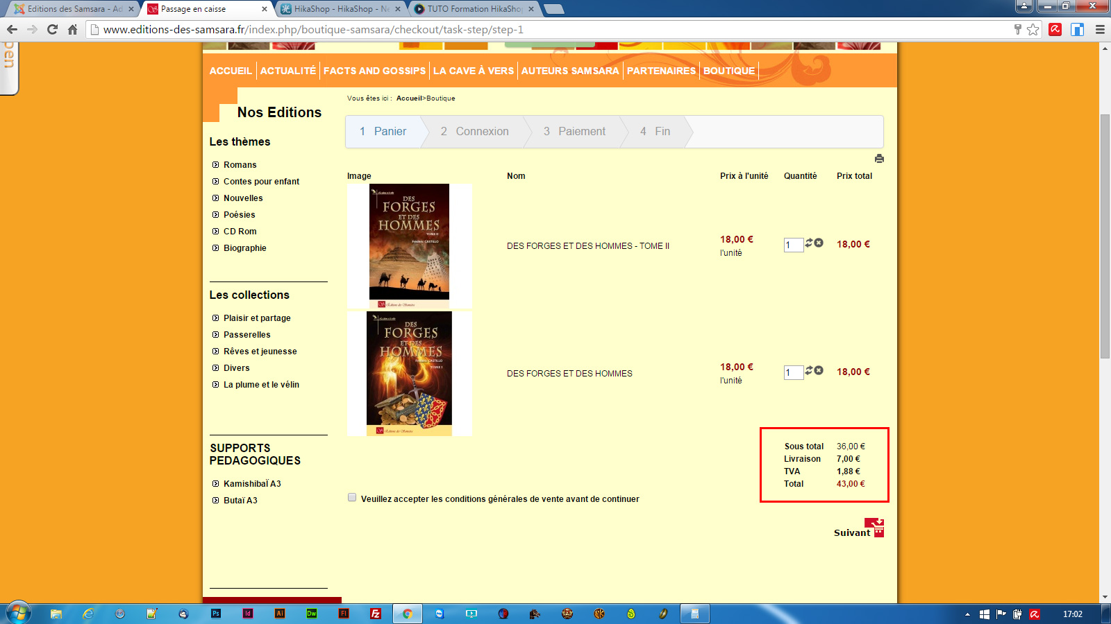 Dans mon exemple n°1 mon souci est réellement un problème de poids puisque j’achète deux livres qui pèsent chacun 520 gr donc la somme des deux fais : 1040 gr donc les frais de ports devrais me faire 9.45 € et non 7.00 € comme il me le propose dans mon panier.