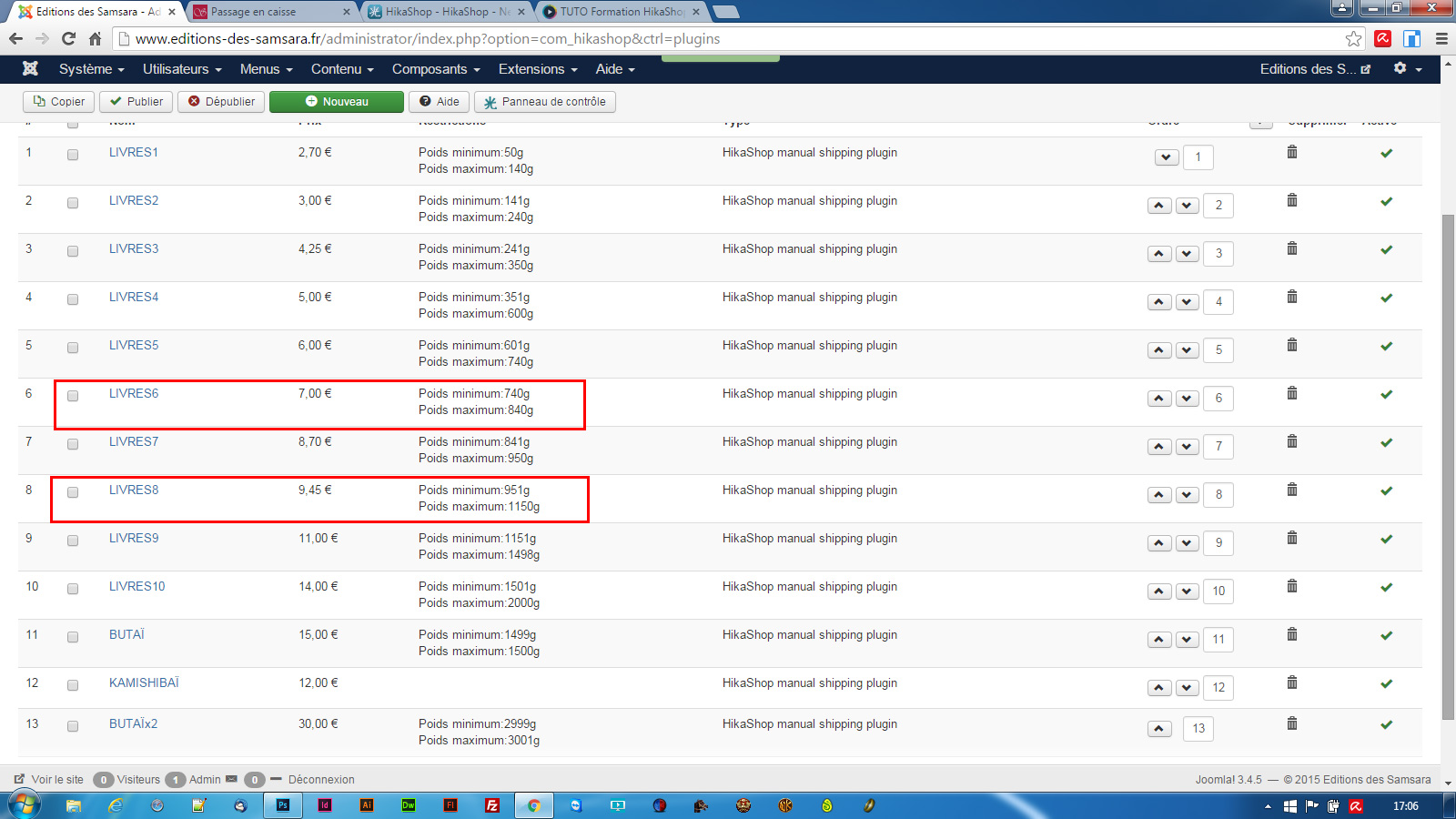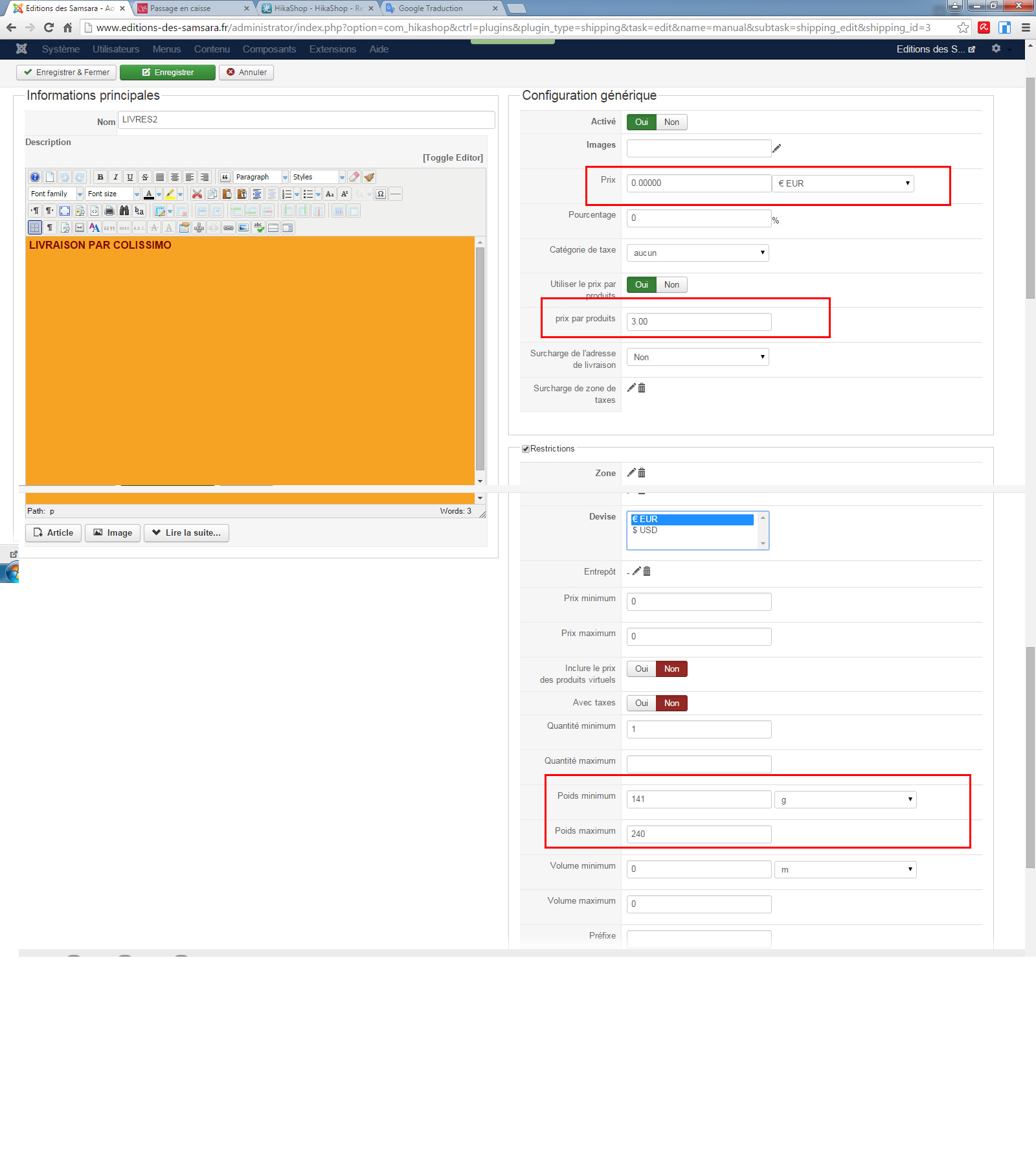 En suivant vos conseils j'ai fais ceci (cf ecran3) ai-je bien fais? j'ai supprimer le prix de la tranche que j'ai placer dans le champs prix par produits mais j'ai tout de même laisser le poids plus bas.
