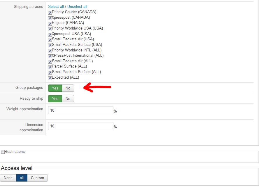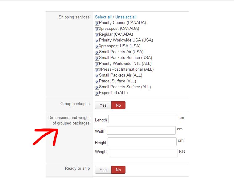 3) The configuration of the Hikashop Canada Post plugin does NOT allow me to enter grouping information when "Group packages" is set to YES (see image: Capture-group-packages-no-additional-settings.jpg) even though the tutorial on your website shown